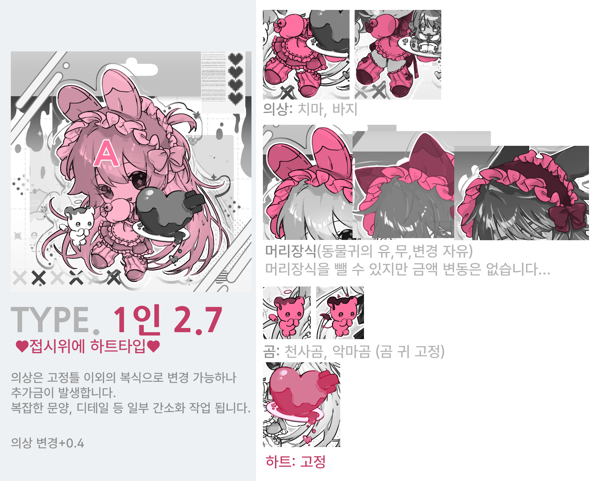 - 작업순서: 커미션 신청- 입금 - 러프 -1차컨펌 - 작업물 전달 - 누락사항 수정